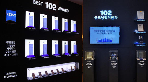세계적으로 인정받은 굿모닝백이안과 굿모닝백이안과는 13만례 이상의 풍부한 안종합수술실적과 칼자이스 선정 11년연속 백내장인공렌즈삽입술 최다수술의, 백내장노안교정용 다초점렌즈수술 부산최다수술로 안종합수술에 대한 인증을 받았으며 더 안전한 수술을 시행하기 위해 끊임없이 연구하고 노력하는 안과입니다