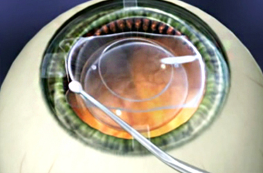 양쪽 렌즈 고리부분을 이용하여 홍채에 고정한 후 수술을 마칩니다.