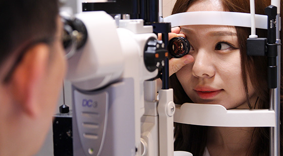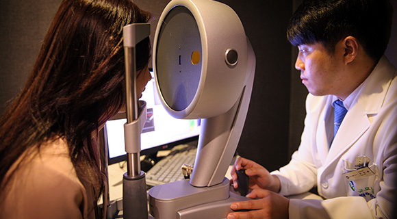 특수 현미경을 통해 눈 뒤쪽에 있는 시신경 부위의 이상여부에 대해 검사합니다.