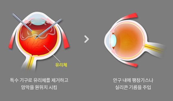 망막박리의 치료는 종류나 환자의 체질 등에 따라 진행됩니다.