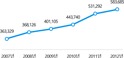 [ 녹내장 연도별 진료인원 추이 | 출처 : 국민건강보험공단 / 단위(명) ]