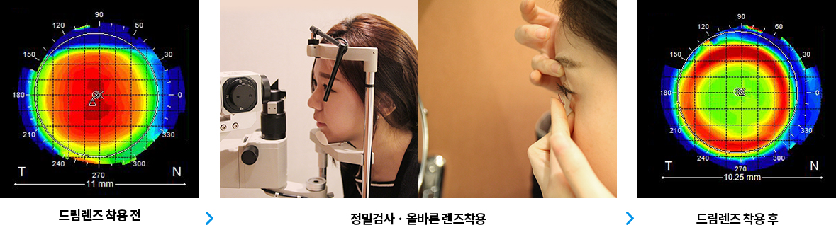 각막모양은 사람마다 다르기 때문에 굿모닝백이안과에서는 정확한 시력검사 및 각막지형도 검사를 통해 렌즈를 맞춤제작하여 주문합니다.
