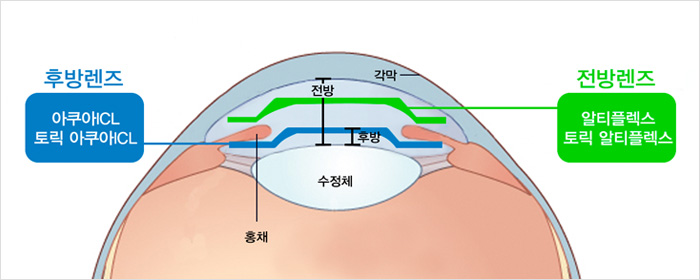 홍채에 직접 고정시키는 알티플렉스 & 토릭 알티플렉스가 있습니다.