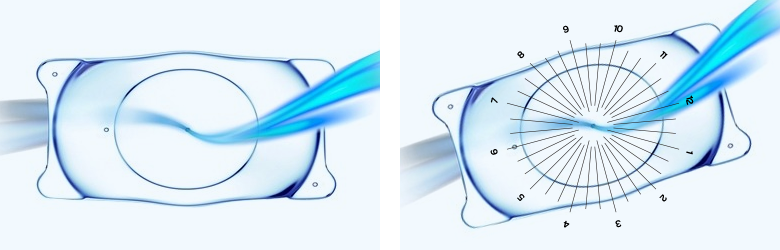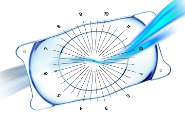 난시의 경우 난시축에 맞춰 회전하여 위치시킵니다.