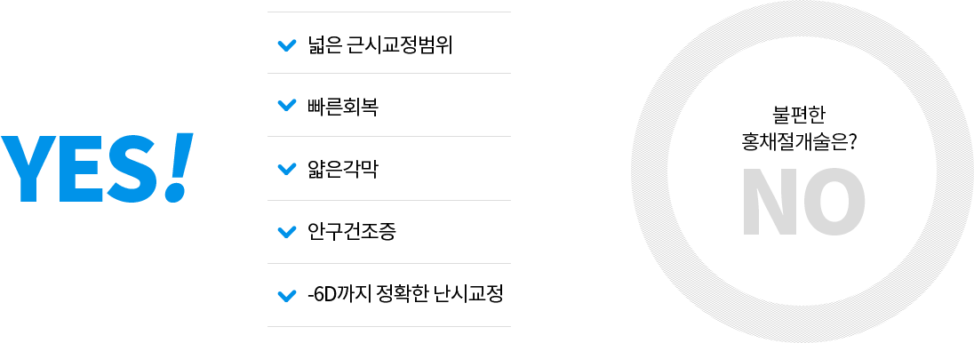 | 특징 | 홍채절개술 필요없음 | 홍채절개술 필요없음 | 홍채절제술 O | 홍채절제술 O |