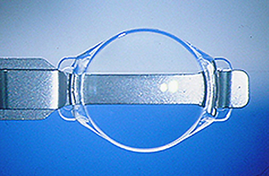 특별히 제작된 기구로 시력에 맞추어 고정이 잘 되도록 렌즈위치를 조정하며 홍채의가장 적합한 위치에 놓습니다.