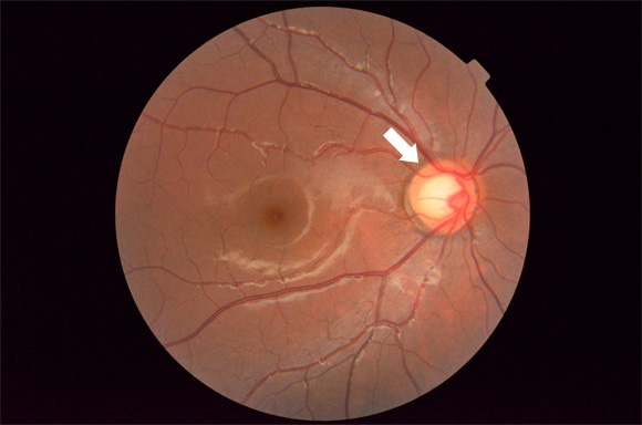 [녹내장환자 시신경] 동그란 시신경이 손상되면서 흰색으로 보이고 점점 커짐