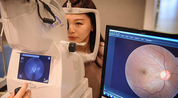특수 현미경을 통해 눈 뒤쪽에 있는 시신경 부위의 이상여부에 대해 검사합니다.