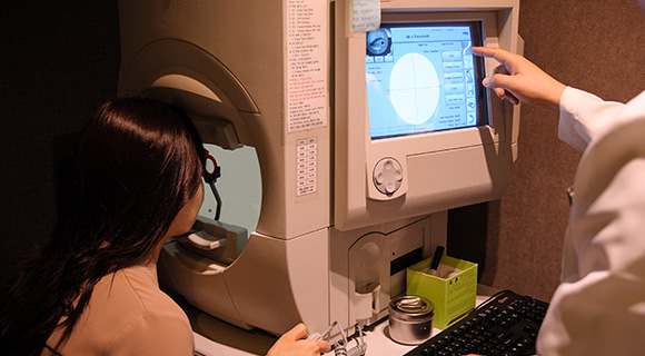 시야검사는 녹내장의 진행을 확인할 수 있는 검사입니다. -